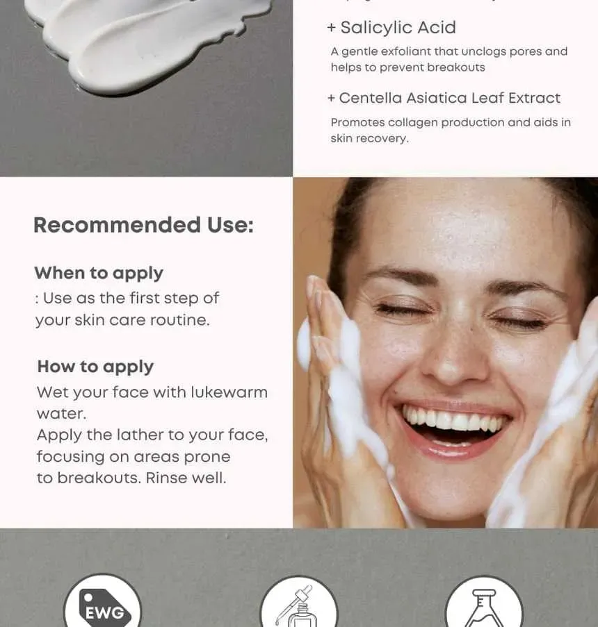 La espuma de textura rica elimina eficazmente las impurezas, el exceso de grasa y el maquillaje, dejando la piel fresca y limpia.