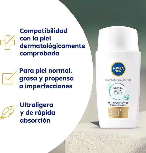 Derma Skin Clear: formulado con niacinamida, este protector solar facial se recomienda para pieles normales, grasas y propensas a imperfeccione...