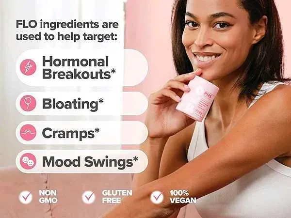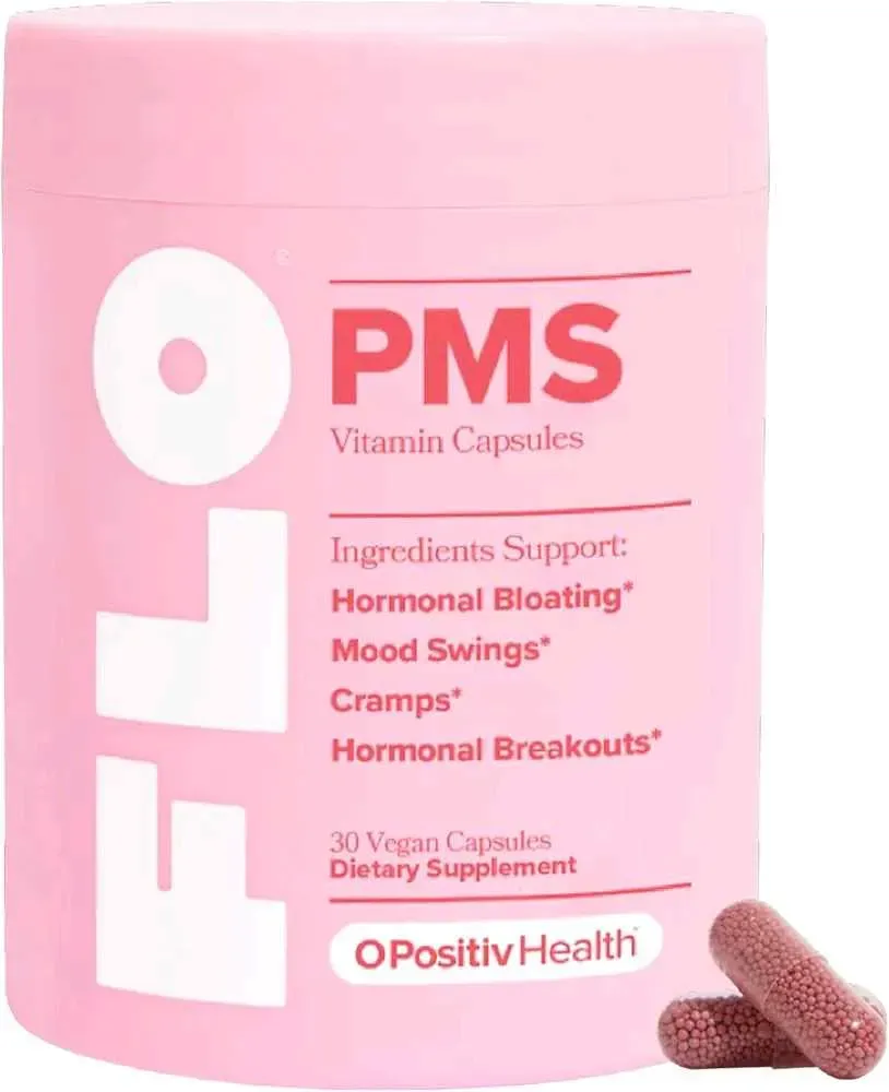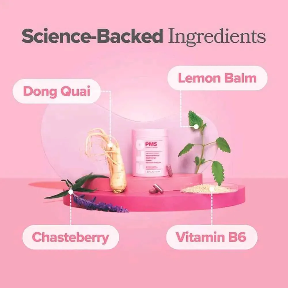 La primera vitamina del síndrome premenstrual: FLO PMS Relief es una vitamina diaria a base de plantas para ayudar con los síntomas comunes del síndrome premenstrual como brotes hormonales, hinchazón, cambios de humor y calambres*.
