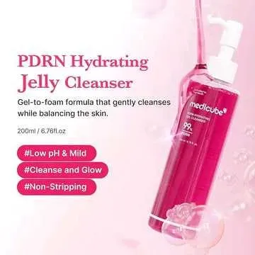 .El PDRN Pink Gel Cleanser combina una textura tipo gel que se transforma en espuma ligera, eliminando impurezas, exceso de grasa y puntos negros sin resecar la piel. Su fórmula con LHA exfolia suavemente y mejora la textura para un rostro más limpio, suave y equilibrado.