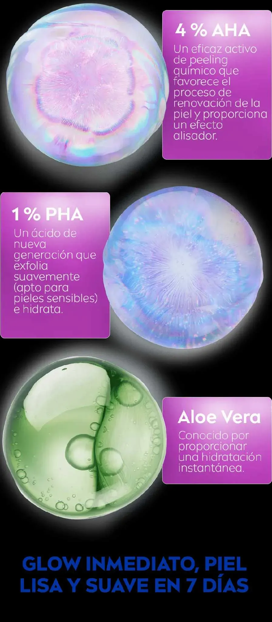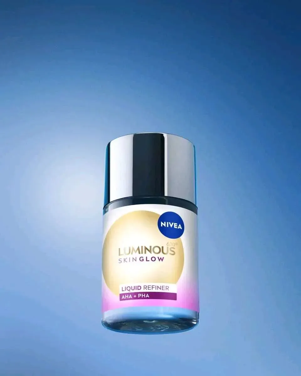 El Exfoliante Líquido NIVEA LUMINOUS630® Skin Glow es un exfoliante sin aclarado con potentes activos 4% AHA + 1% PHA y Aloe Vera, que a la vez es suave con la piel y no produce sensación de picor. Dermatológicamente aprobado para uso diario.