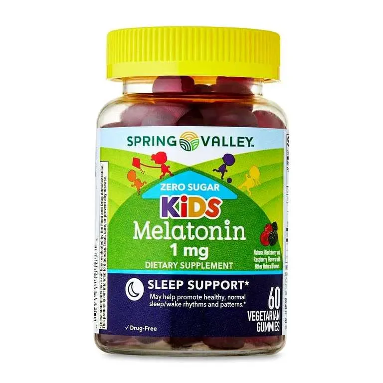 Nuestro suplemento dietético Spring Valley sin azúcar Kids Melatonina Sleep Support Gomitas son una manera fácil de ayudar a los niños a obtener el apoyo para dormir que necesitan. Cada gomita proporciona un miligramo de melatonina, un compuesto natural que es producido por el cuerpo que ayuda a reg...