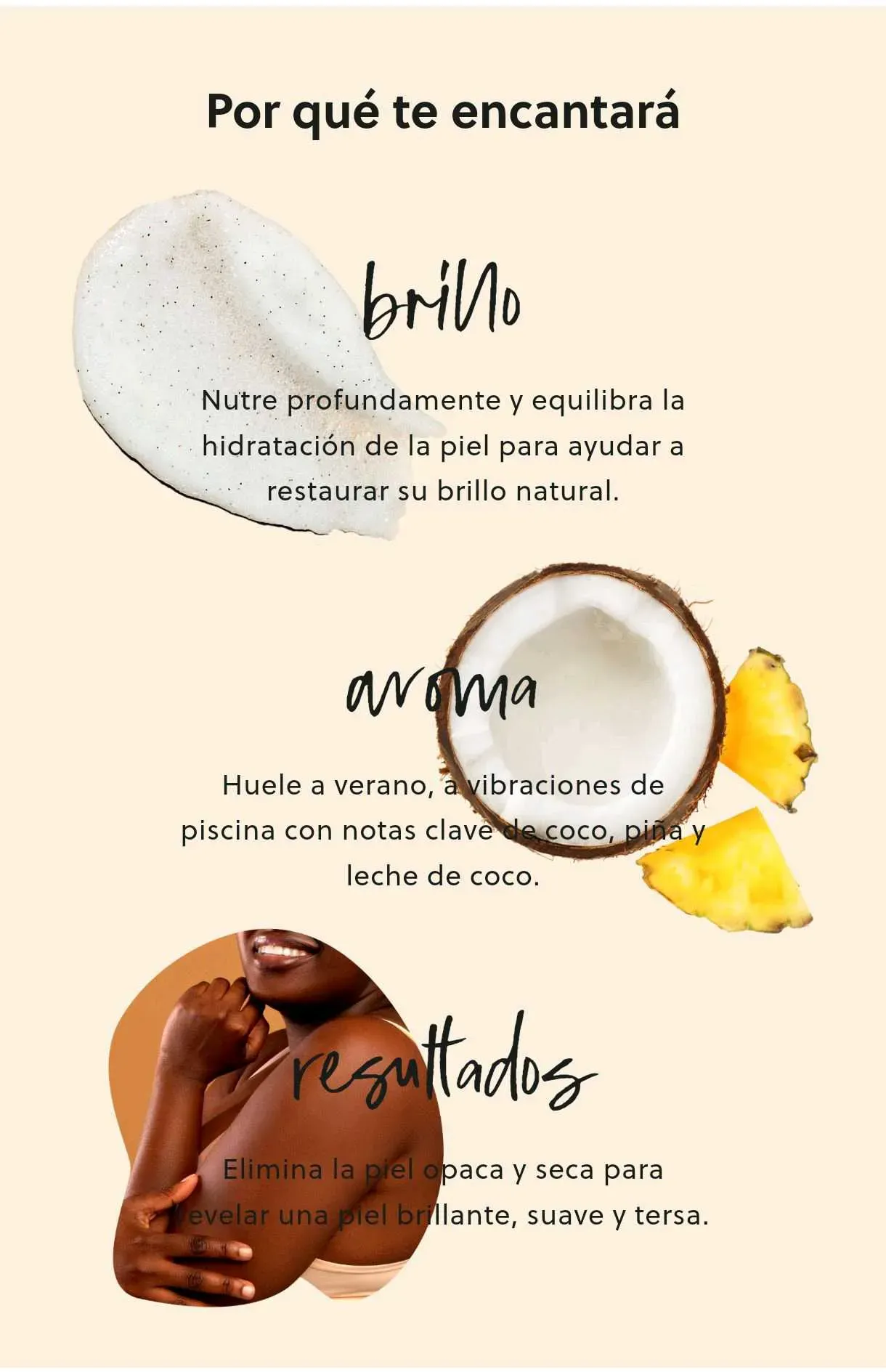 Mejora tu rutina de ducha, exfolia tu piel y luce una piel suave y radiante con el aroma veraniego de Coco Colada. Elaborado con azúcar, manteca de karité, piña y una variedad de aceites naturales como coco, onagra, aguacate, macadamia, almendras dulces, cártamo y naranja.